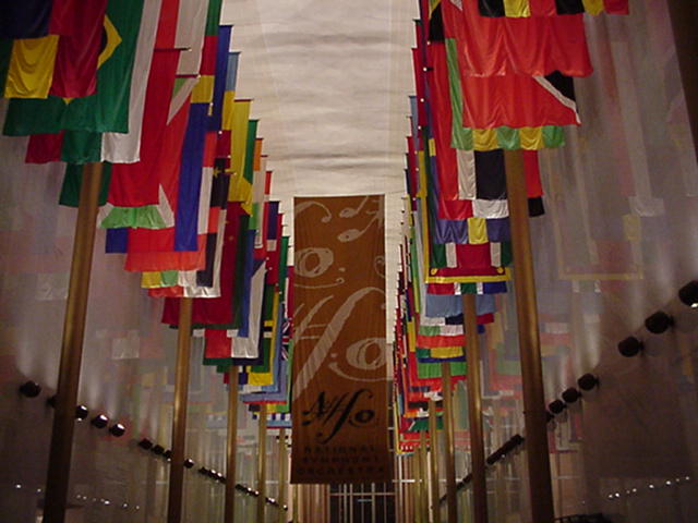 Here's a display of nations flags in the Kennedy Center.
