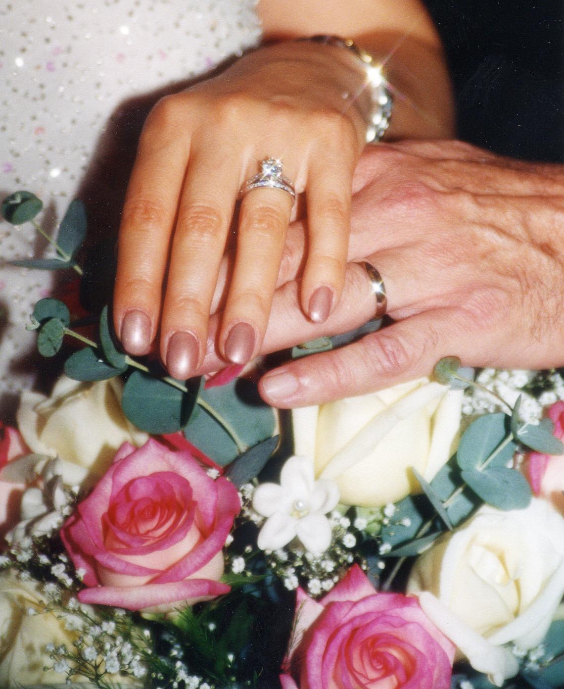 hands locked in warm embrace. The bouquet that Elena designed served as a